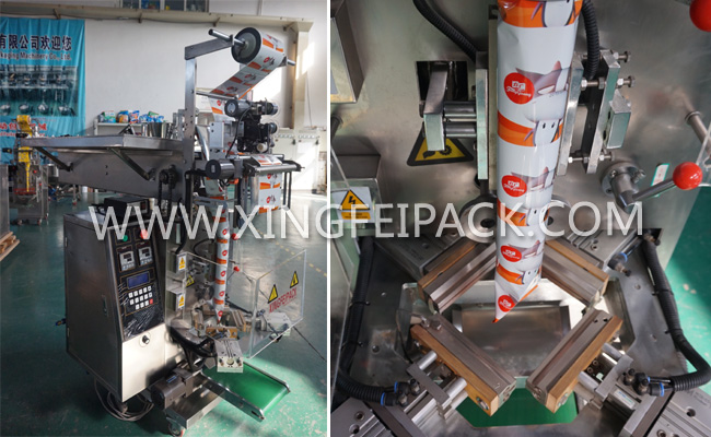 Function: The Automatic Bucket Conveyor Packing Machine can finish the process dosing, filling, sealing, date coding (optional), the machine has the function of sensor tracking, stepless speed adjustment, usually the sealing of the bag is back central sealing.