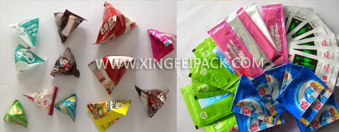 Application of the Bucket Conveyor Packing Machine: mix package, such as toy, candy, melon seeds, snack with card, Milk tablets with chocolate beans.