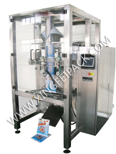 4. This machine completes automatically the whole packing procedure of loading materials, measuring, bag making, sealing, date printing, air charging ( or exhausting) and finish products transporting as well as counting.