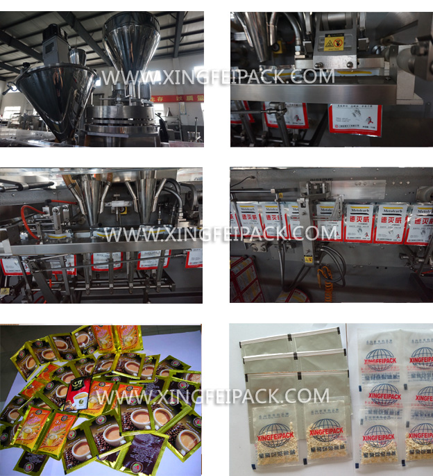 La máquina de embalaje de polvos y gránulos utiliza el dise?o conciso de salida dúplex. La máxima velocidad puede alcanzar las 160 bolsas por minuto. Es la solución más económica para el envasado de bolsas peque?as a alta velocidad.