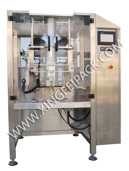 La machine d’emballage automatique VFFS (XFL-300) (remplissage scellage forme verticale automatique) est équipé d’une protection de sécurité et conforme aux exigences de gestion de sécurité de l’entreprise. Le centre de contr?le de d’entrainement compose système servo PLC, système de commande pneumatique et écran tactile, qui maximisent la précision de contr?le, la fiabilité et le niveau d’intelligent zed.