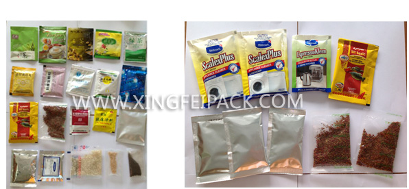 適用于食品,醫(yī)藥,化工產品中的松散,無粘性,細小顆粒狀,物料的自動包裝,如:湯料,沖劑,干燥劑,味精,白糖,麥片等。