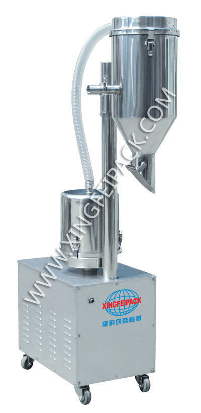 真空上料機(jī)由真空泵〔無油、無水〕,不銹鋼吸料咀、輸送軟管、布袋過濾器〔或316L不銹鋼過濾器〕,振打清理器〔或壓縮空氣反吹裝置〕、真空料斗和料位自動(dòng)控制裝置等組成,整套系統(tǒng)設(shè)計(jì)合理、制造精美。真空加料機(jī)用于包裝機(jī)、壓片機(jī)加料和用于混合機(jī)加料時(shí),配置略有不同,用戶在訂貨時(shí)需作出說明
